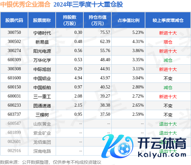 中银优秀企业夹杂为夹杂型-偏股基金,把柄最新一期基金季报披露,该基金财富成就:股票占净值比90.11%,债券占净值比4.9%,现款占净值比3.95%。基金十大重仓股如下: