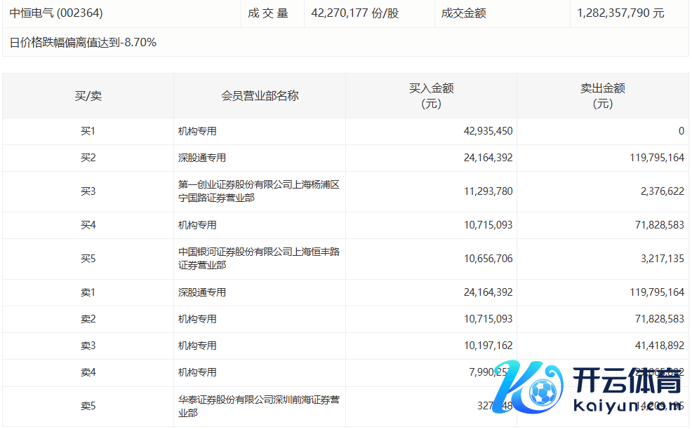 中恒电气当天跌停,有3家机构专用席位净卖出1.11亿元中恒电气当天跌停,有3家机构专用席位净卖出1.11亿元
